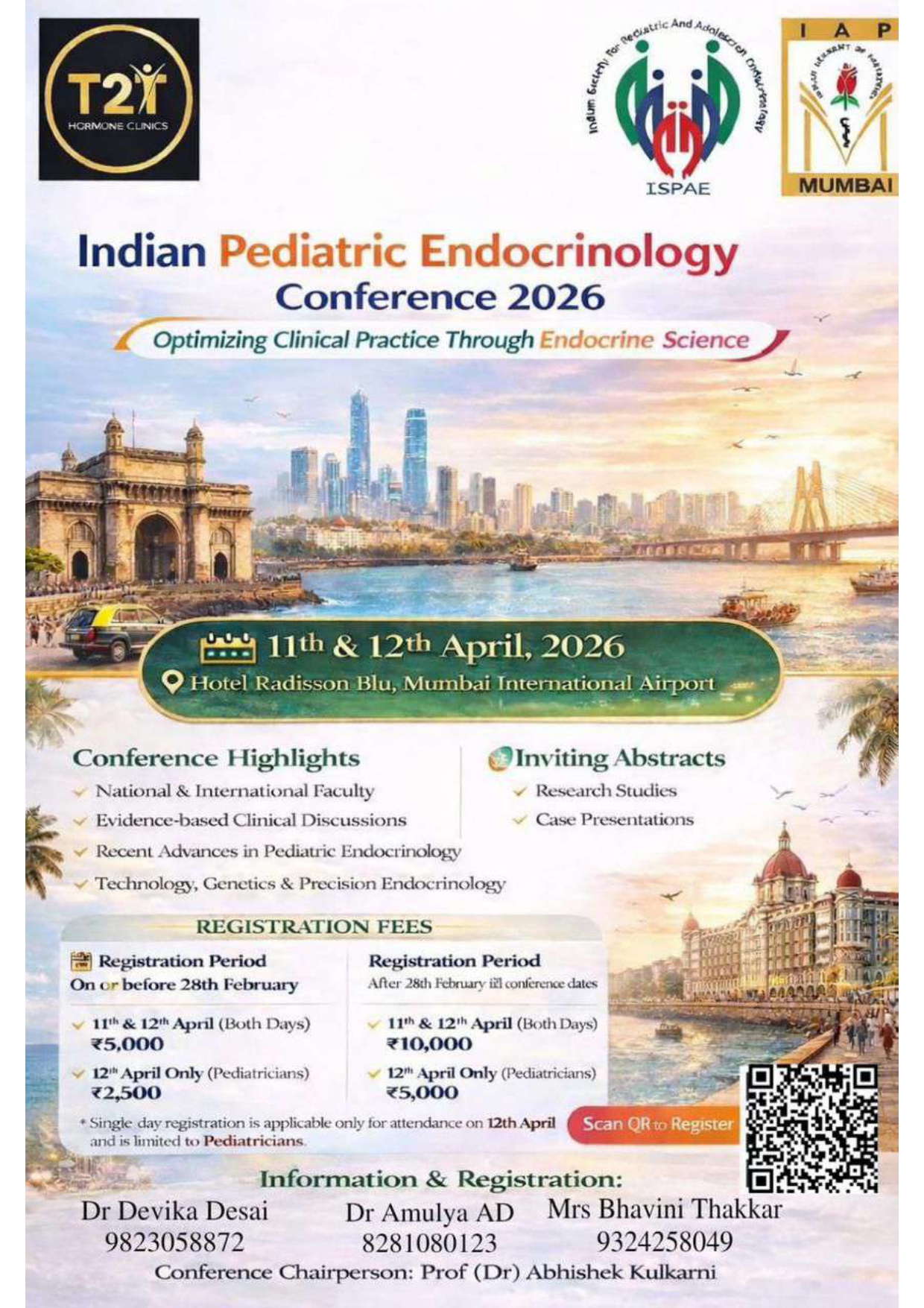 Please fill out the registration form to secure your spot at the Indian Pediatric Endocrine Conference 2026.